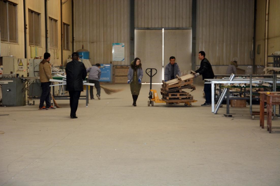 為認(rèn)真執(zhí)行集團(tuán)公司冬季安全生產(chǎn)“大快嚴(yán)”的百日集中行動(dòng)方案,根據(jù)安全隱患地“大排查、快整治、嚴(yán)執(zhí)法”的具體要求。全體人員對(duì)門窗車間進(jìn)行衛(wèi)生清掃及物料規(guī)整擺放,徹底整治所有安全隱患,防范各類安全事故。