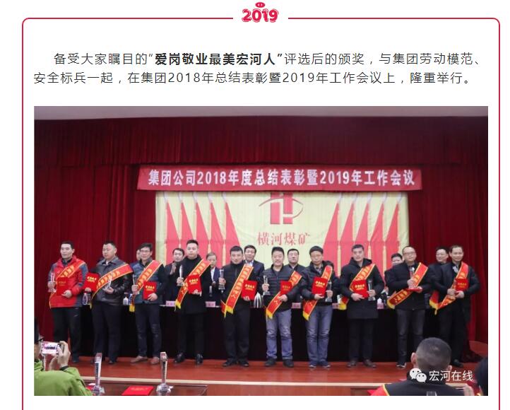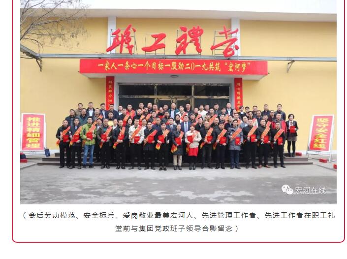 “集團這次對2018年工作中涌現(xiàn)出來的勞動模范、安全標(biāo)兵和愛崗敬業(yè)最美宏河人等先進單位和先進個人,進行了隆重表彰。目的就是通過樹立一批扎根基層一線、踏實苦干實干的先進典型,旗幟鮮明地告訴大家:集團黨政始終關(guān)注在煤礦井上下愛崗敬業(yè)的職工,集團黨政始終關(guān)注在公司車間班組基層一線愛崗敬業(yè)的職工,集團黨政始終關(guān)注在不同崗位上辛勤工作、無私付出、愛崗敬業(yè)的職工?!?集團黨委書記、董事長張文,在大會講話中說。