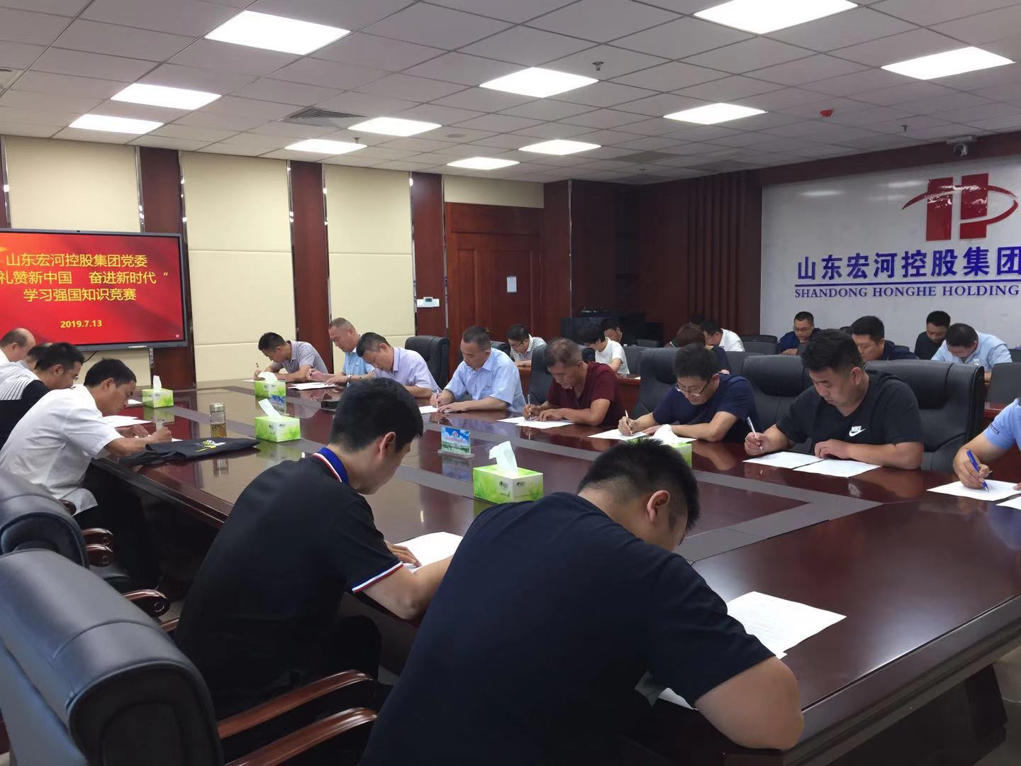 為弘揚愛國主義精神和民族精神,扎實做好“學(xué)習(xí)強國”學(xué)習(xí)平臺的使用和推廣,認(rèn)真學(xué)習(xí)貫徹習(xí)近平新時代中國特色社會主義思想和十九大精神,依據(jù)鄒宣發(fā)【2019】9號文精神和財政局黨委要求,宏河集團7月13日下午在集團總部大廈舉行“禮贊新中國奮進新時代”學(xué)習(xí)強國知識競賽決賽。 知識競賽從6月份開始,集團黨委下屬各基層黨支部經(jīng)過初賽選拔,各黨支部推薦1-2人,共計29人參加集團黨委決賽。本次比賽采用書面答題方式進行,內(nèi)容按全部來自于學(xué)習(xí)強國知識競賽題庫。